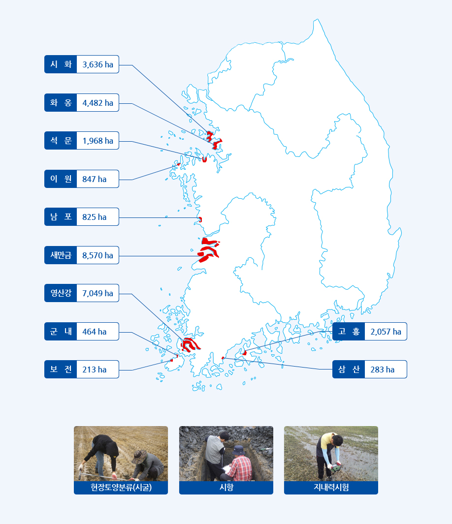 제외한 12개 지구 30,394ha의 간척농지에 대한 정밀토양조사 및 염농도 모니터링